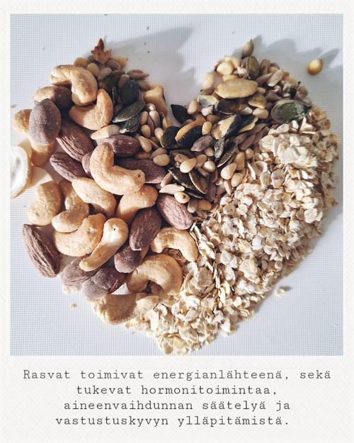 Rasvat toimivat energianlähteenä sekä tukevat hormonitoimintaa, aineenvaihdunnan säätelyä ja vastustuskyvyn ylläpitämistä.