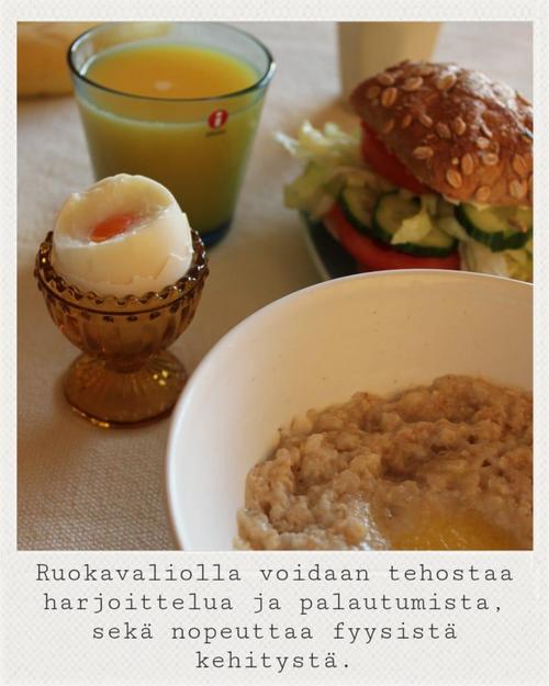 Oikein koostettu ja rytmitetty ravinto, sekä riittävä lepo ja lihashuolto tukevat kehittymistä ja palautumista.