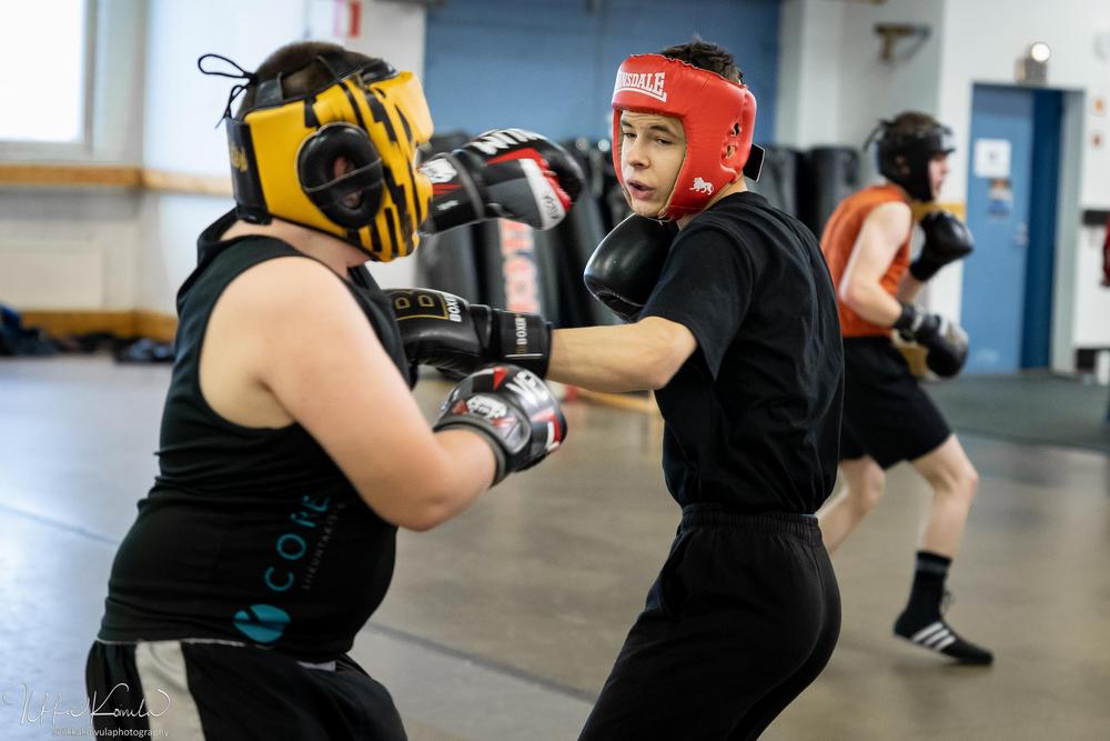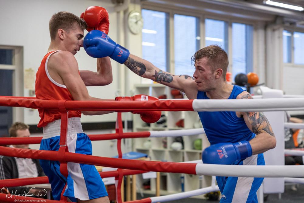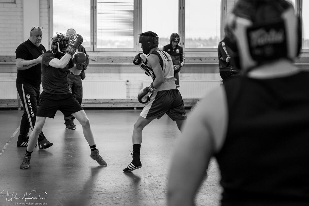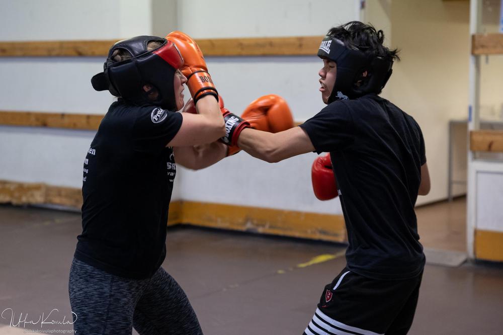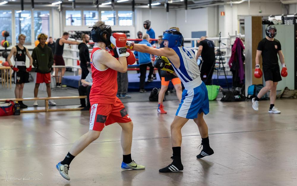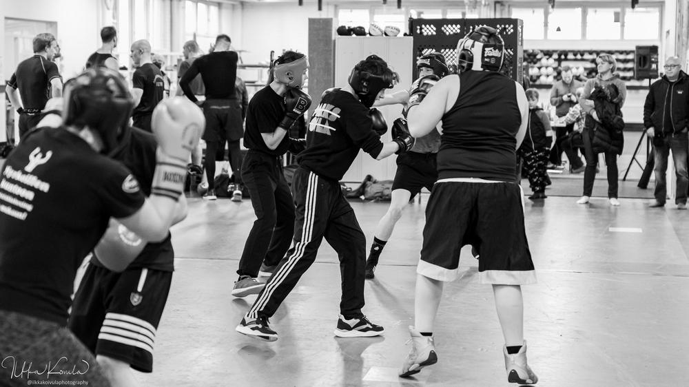 Ennen kisoja pidetyissä sparreissa oli mukavasti nyrkkeilijöitä. Osa ekaa kertaa tällaisessa isommassa mukana, osa virittelemässä työkaluja tulevaa varten. Näitä sparreja aina tarvitaan ja isommalla porukalla aina parempi