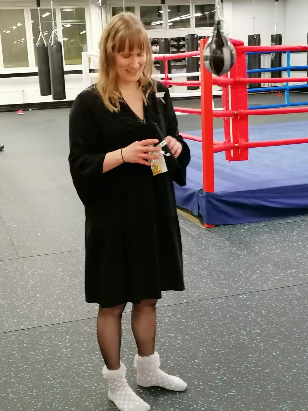 30v tänä vuonna, eikä tämäkään tunnustus tule pelkästään tasavuosista, vaan myös seuran ohjaus- sekä johtokuntatyöstä. Hän on uusi/vanha tulija… Harrasti seurassa 2010-luvun alkupuolella, katosi opiskelemaan ja loppupuolella palasi seura-aktiiviksi eli Mona Ylivirta 30v ja toiminnasta LaLun nyrkkeilyn hyväksi hänelle luovutetaan pieni paketti.. sekä… koska.. Mona valmistautuu harjoituksiin sotilaallisella täsmällisyydellä, joten hänelle myös annetaan jotain joka muistuttaa siitä…